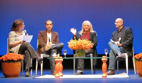 Left to Right: Moderator, Director Lee Unkrich, Producer Darla K. Anderson, Moderator.