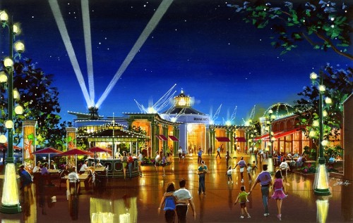 The once popular Pleasure Island section of Downtown Disney had fallen on hard times. attendance was low, employees were being let go, and even its once-popular nightly New Years Eve celebration had lost some of its magic. Add a few other factors, such as the higher pay scale for equity actors, to that and Disney executives knew they had to do something. The fruits of that decision were made public today with new concept art for Hyperion Wharf, a completely re-imagined plan for what was once Pleasure Island.